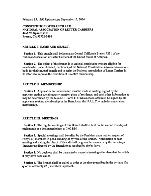 The above is how our bylaws use to read, for some reason it was changed ages ago it seems. I am trying to find out when and why exactly, but it most definitely was a bad change that took power away from the dues paying rank and file.