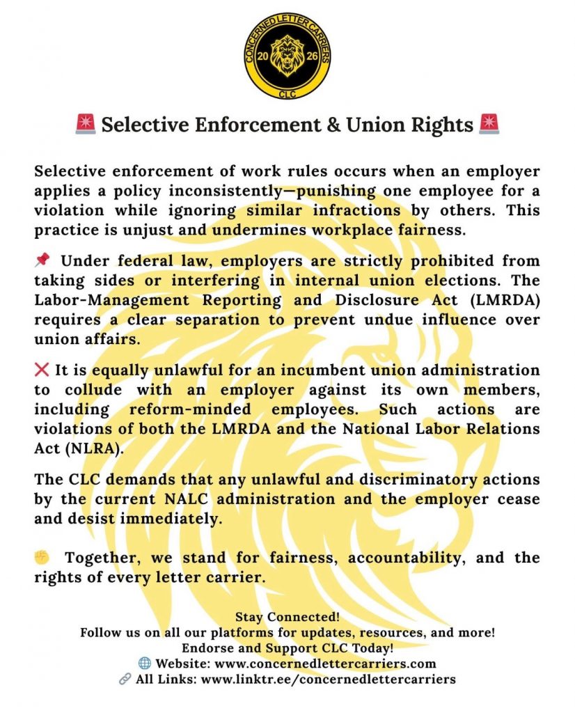 The election is happening in November 2025, and the only way you can be represented by me is if I get more votes than anyone else. Games are played to exclude me from anything in the union, and only via enforcement from the NLRB will you the due paying rank and file be represented 100%.